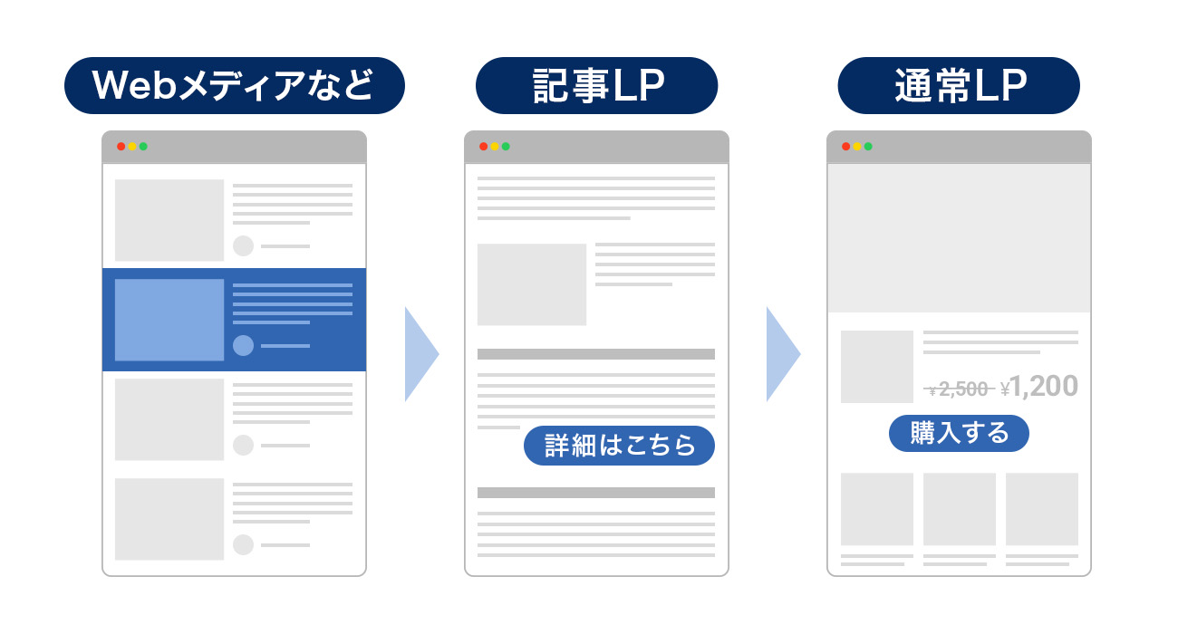 ネイティブ広告をクリックした先のランディングページは、通常のLPではなく「記事LP」と呼ばれる読み物型のページが適しています。