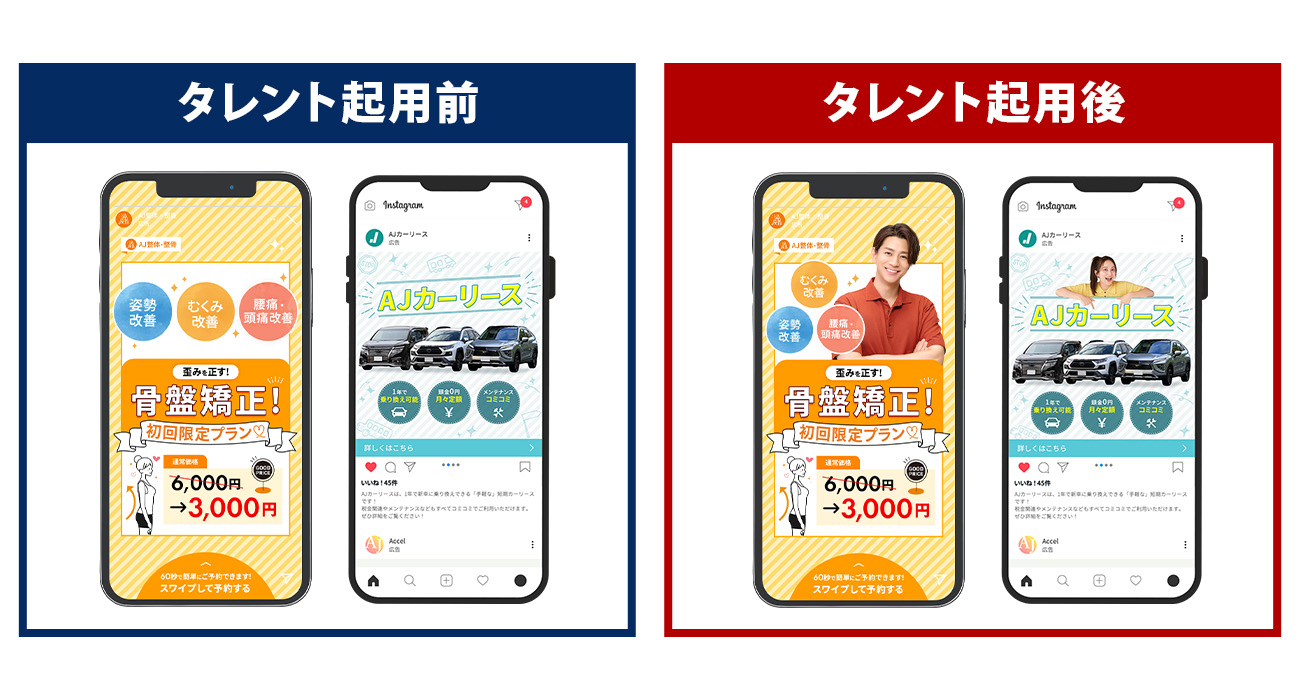 Web広告・SNS・チラシなどはもちろん、看板やのぼりなどで幅広くタレントを活用したところ、地元住民や一般消費者への認知度向上に大きく飛躍がみられたと語っています。