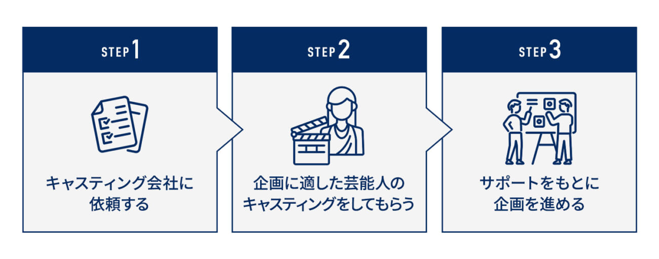 以下では、キャスティング会社へ依頼する流れをステップごとに紹介します。