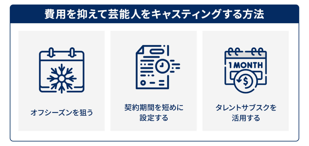 費用を抑えて芸能人をキャスティングするには、以下の方法があります。