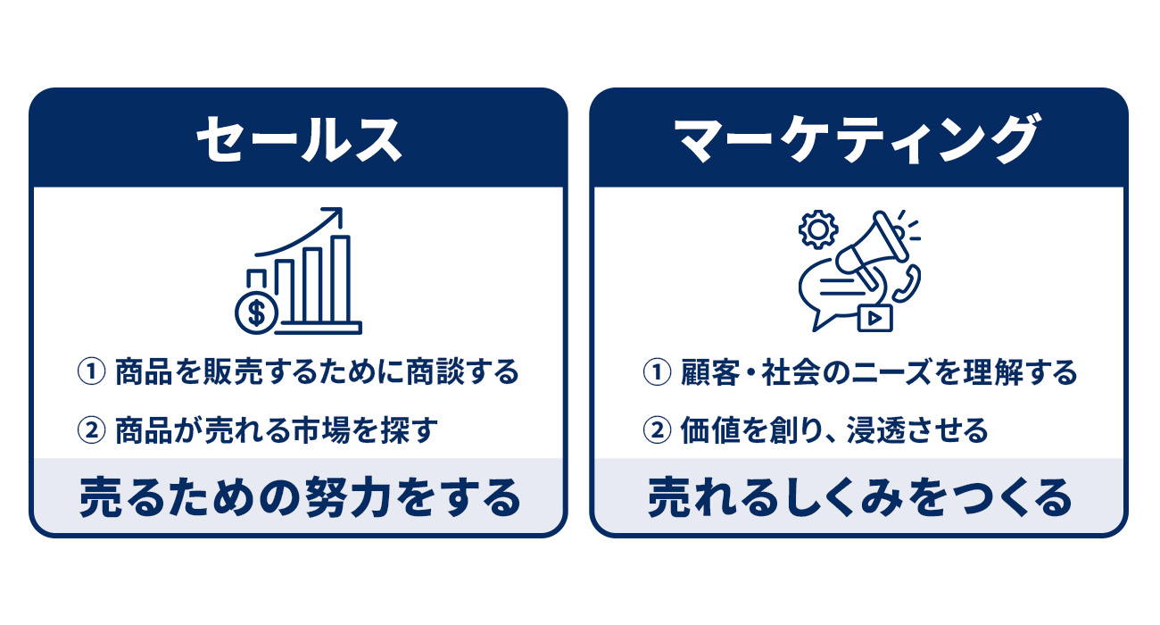 セールスとマーケティングは混同されがちですが、明確な違いがあります。