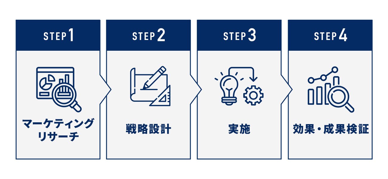次に、リサーチで得た情報をもとに、具体的なマーケティング戦略を設計します。
