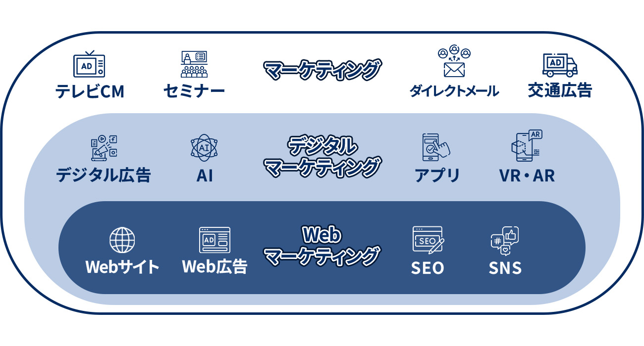 Webマーケティングは、Webサイトを中心としたマーケティング活動を指し、デジタルマーケティングの中の一種です。