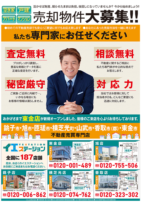 折込チラシや回覧板広告、店舗外看板、市区町村広報誌広告、郵便局などの封筒広告に活用させていただいています。他にもテレビCMやHP、DMに活用しています。